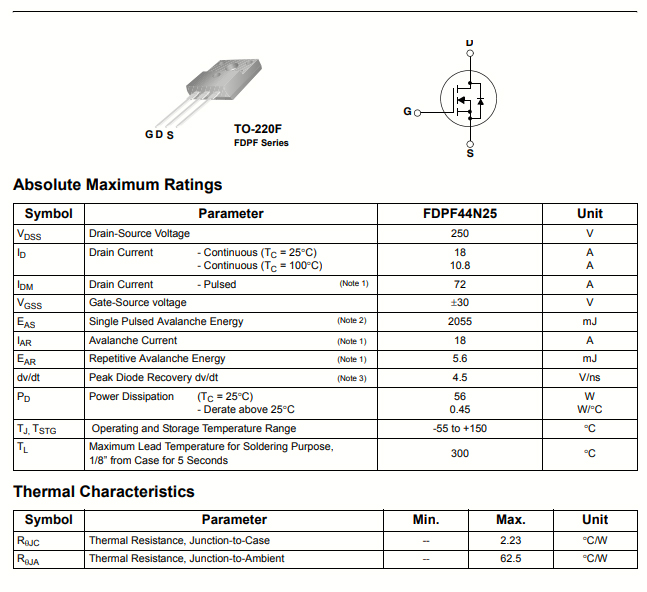 44N25T MOSFET N-CHANNEL 250V TO-220F