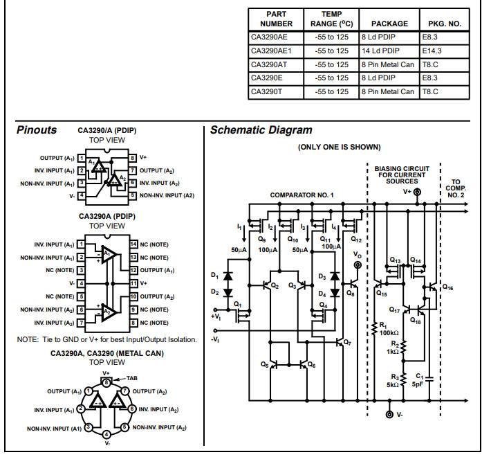 - Courant d’entrée très faible à V+ 5V….. 3,5pA (Typ)