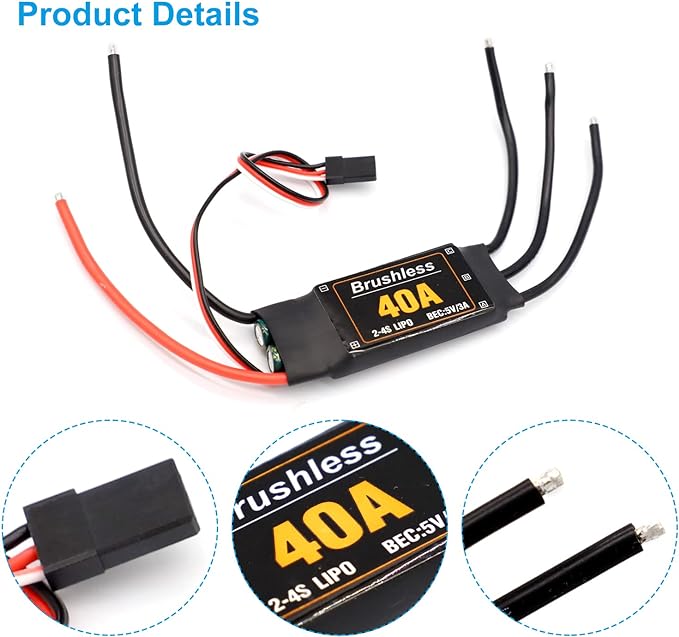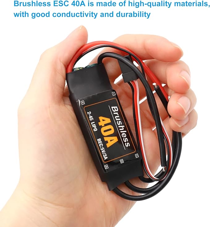 • ❃Haute Qualité : l’ESC sans balais 40A est fabriqué à partir de matériaux de haute qualité, avec une bonne conductivité et durabilité.