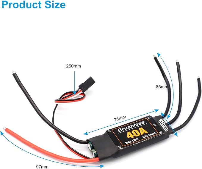 • ❃Taille Parfaite : La taille de l’ESC brushless 40A est d’environ 68x25x8mm, la taille est appropriée, et la synchronisation peut être modifiée pour s’adapter à différents moteurs brushless.
