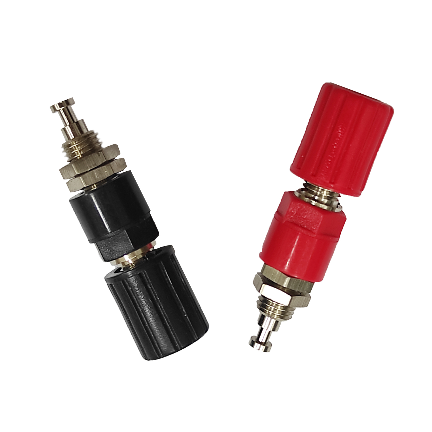 FICHE BANANE FEMELLE 4MM AVEC TROU (2MM) PM ROUGE/NOIR