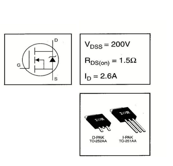 Le D-Pak est conçu pour un montage en surface utilisant des techniques de brasage en phase vapeur, infrarouge ou à la vague. La version à câble droit (série IRFU) est destinée aux applications de montage traversant. Des niveaux de dissipation de puissance allant jusqu’à 1,5 watts sont possibles dans les applications typiques de montage en surface.
