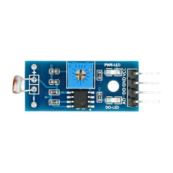 LDR ( résistance variant à la lumière, ou photorésistance) agit comme une résistance variable. La lumière inondant la LDR diminue sa résistance. Le module capteur LDR génère une sortie 5V dans l’obscurité et 0V en pleine lumière,La sensibilité de la LDR peut être ajustée via un potentiomètre ajustable placé sur le module.