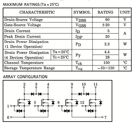 - Dissipation de puissance élevée (fonctionnement de 4 appareils) : PT=28W (Tc=25°C)