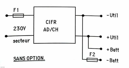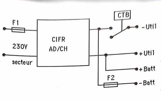 mode chargeur, avec le cavalier en position « CH », les sorties Util et Batt sont à 6,87 ; 13,6 V ; 27,2 V ;