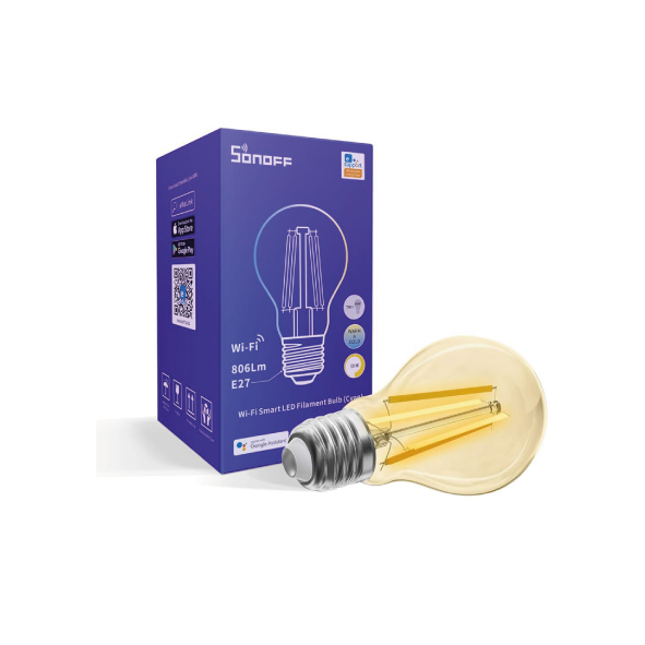 La Sonoff B02 F-A60 est une lampe LED à filament dimmable avec culot E27. La couleur et la luminosité de la lampe peuvent être réglées à l’aide de l’application iOS / Android. Il y a 4 scènes réglables pour la lampe LED: repos, lecture, fête et standard. La lampe LED peut être utilisée avec Amazon Alexa (Amazon Echo, Echo Dot, Tap) et Google Home / Nest. Vous pouvez également régler la lampe LED comme lumière chaude / blanche ou blanche.