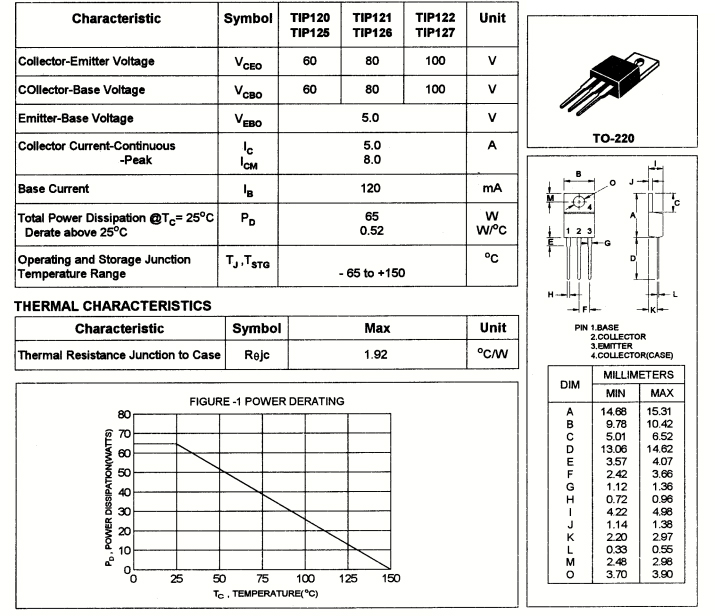 VCEO(sus) = 60 V (Min) − TIP120, TIP125