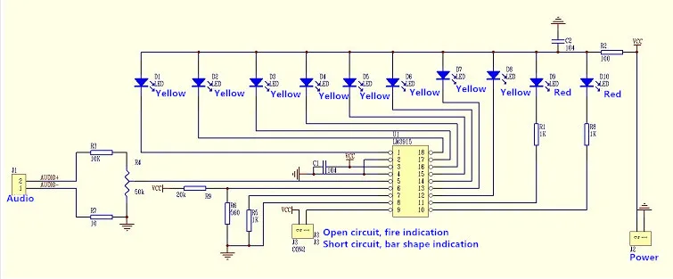 • Kit d’indicateur de niveau audio LM3915 (présenté deux lignes de connexion)
