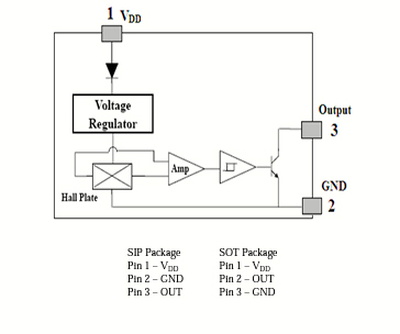 Le SS41F est un capteur verrouillé à effet Hall intégré conçu pour la commutation électronique des applications de moteurs à courant continu sans balais. L’appareil intègre un régulateur de tension, une diode de protection contre l’inversion de batterie, un capteur Hall avec système d’annulation de décalage dynamique, un circuit de compensation de température, un petit amplificateur de signal, un déclencheur de Schmitt et une sortie à collecteur ouvert pour absorber jusqu’à 25 mA.