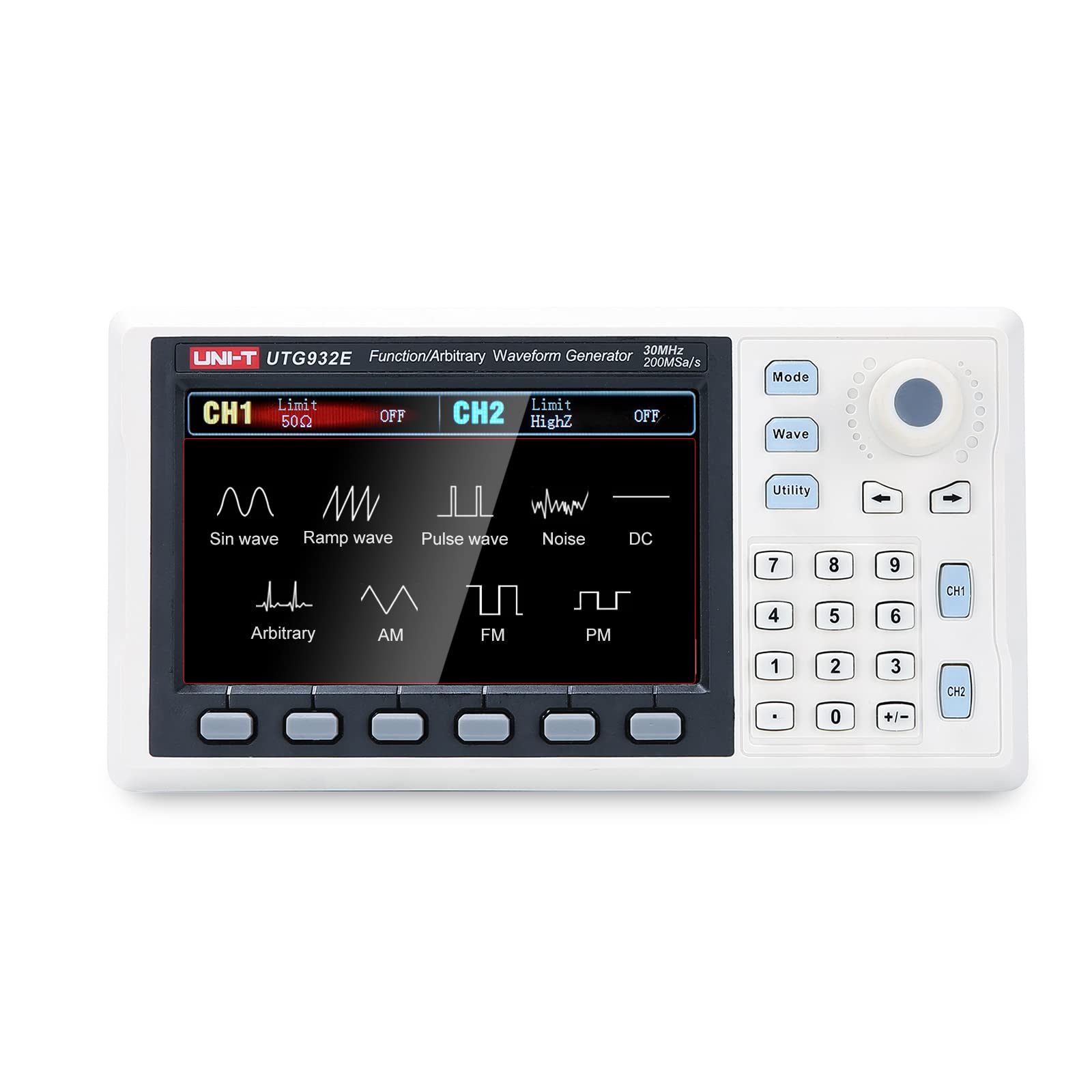 L’UTG932E de UNI-T est un générateur de fonction de 14 bits économique avec une bande passante de 30 MHz. Ce générateur de fonction utilise la technologie de synthèse numérique directe (DDS) pour produire des formes d’onde stables et précises. Ce générateur de fonction est livré avec 24 formes d’onde arbitraires intégrées et peut en stocker jusqu’à 26.